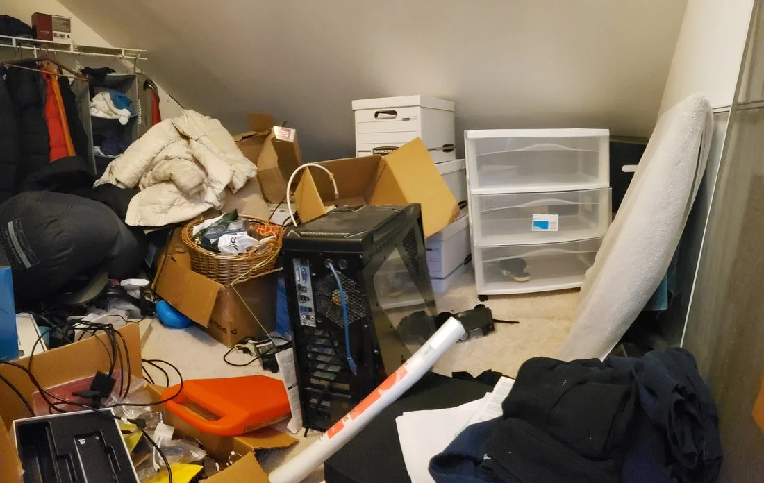 The moment I stepped into this attic, I was greeted by an old desktop tower, a basket of mystery items, and several cardboard boxes that looked like they were in the middle of a slow-motion escape. This wasn’t a mess—it was a story in progress. As a professional organizer, I’ve seen plenty of rooms where items quietly drift into corners, but this one? This one’s staging a full-blown rebellion. Luckily, organizing and decluttering services were made for exactly this kind of scenario.