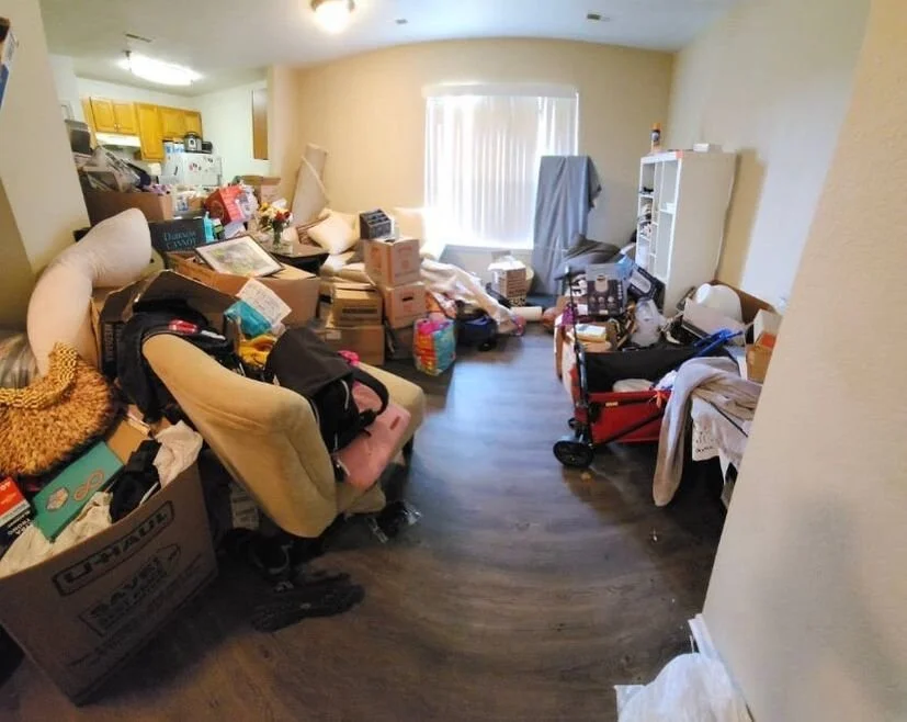 I step into this living room and immediately remember why I love being a professional organizer. Rooms like this tell a story. This one says, “We had a plan once, then life happened, and now we’ve built a cardboard city.” I’m not here to judge. I’m here to cheer on every brave person who says, “Maybe I don’t need all seven decorative throw blankets… yet.”