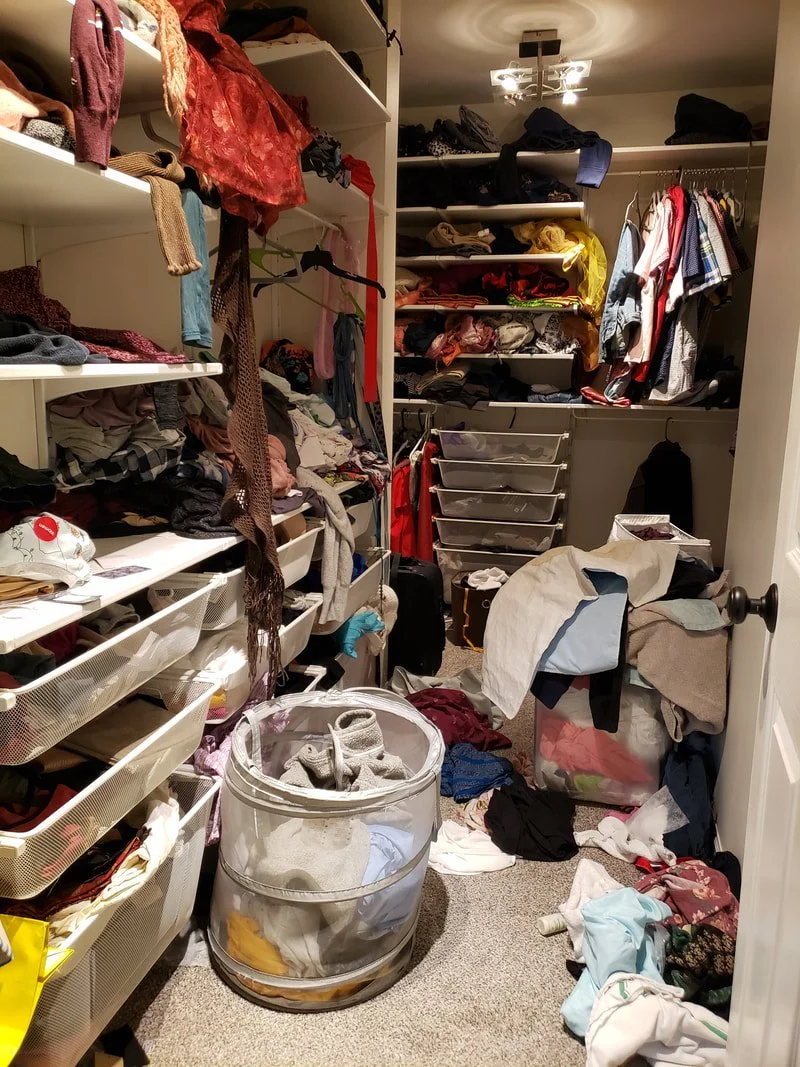 Closets like this one are a perfect example of how real life outpaces the best of intentions. You might’ve had systems once—drawers for shirts, shelves for sweaters—but eventually, life said, “Nice try,” and your laundry baskets became long-term residents. That’s where organizing services come in. Whether you're calling in a professional home organizer, a closet organizer service, or someone who just really likes folding things neatly, this kind of space is exactly what we love to transform.